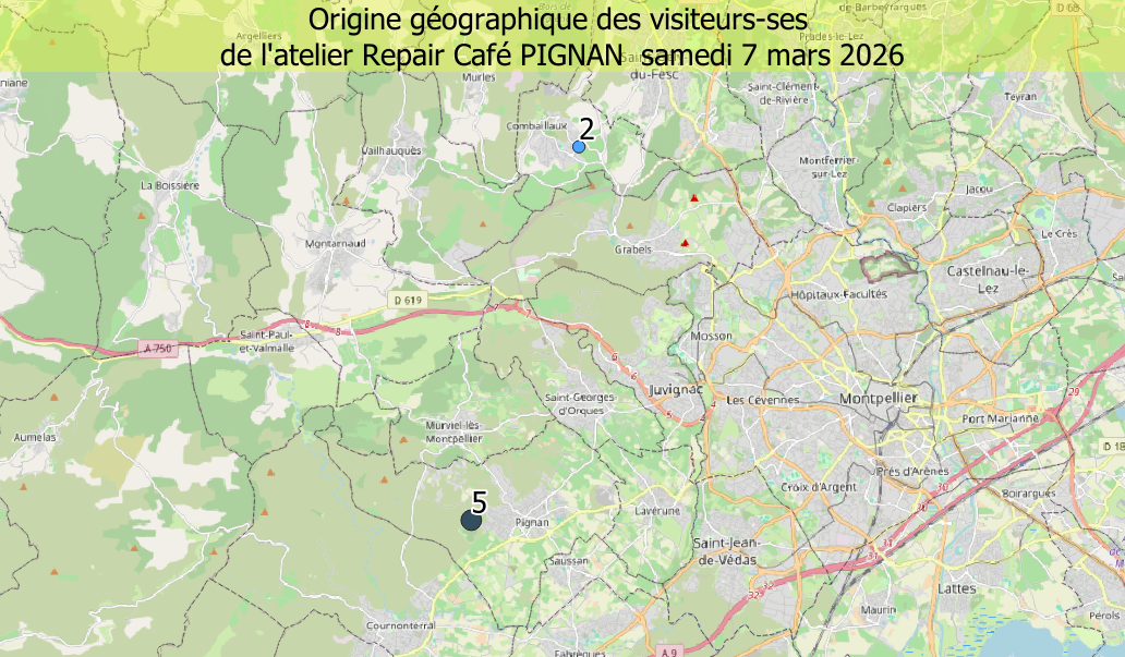 Pour la localisation visiteurs.teuses facile = 5 Pignan 2 Combaillaux.